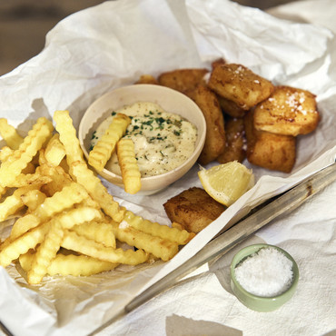 Eine Spezialität aus der niederländischen Küche: saftige Alaska-Seelachsfiletstücke in goldgelbem Backteig. Dieser köstliche, mundgerechte Snack ist besonders bei jungen Genießern beliebt. Knusprig gebacken und mit Pommes sowie Dip serviert, bringen die Fischhappen selbst im Winter echtes Strand- und Urlaubsgefühl. Praktisch grätenfrei und vorgebacken. MSC-C-51859
