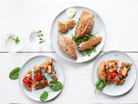 Wer eine Alternative zur herkömmlichen Pizza sucht, findet mit der Vollkornpizza Tomate Mangold einen tollen Ersatz. Der knusprig feine Boden aus Weizenvollkornmehl ist belegt mit Kirschtomaten, Mangold und Mozzarella. Wenn wir Lust auf Abwechslung haben belegen wir die leckere Basis noch mit dem Lachsfilet Nordlicht oder Hähnchen.
