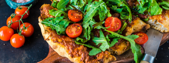 Für unsere Variante haben wir die eismann Pinsa Margherita (Art.-Nr. 34121) noch mit ein wenig eismann Natives Olivenöl Extra (Art.-Nr. 34041), eismann Crema mit Datteln und Feigen (Art.-Nr. 34253), sowie frischen Tomaten und Rucola verfeinert. Eine herrliche Abwechslung zur klassischen Pizza!
