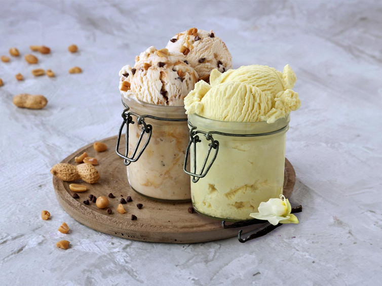 Ganz frisch im eismann Sortiment und auf jeden Fall eine Sünde wert: unsere Eissorten BIO Vanille Eis (40002) und BIO Erdnuss Eis (40003).