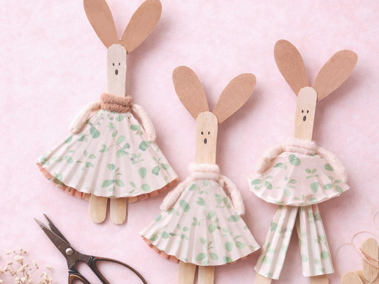 Lustige Hasen aus Holzstielen sind eine fröhliche, schnelle Bastelidee für Frühling und Ostern – ideal zum Basteln mit Kindern.