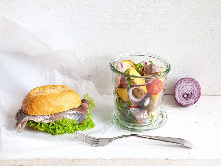 Bei einem Besuch an der Nordsee ist das Brötchen mit Matjes ein Muss. Hier lautet das Motto „Weniger ist mehr“, denn für den Klassiker braucht es nicht viel: Ein knuspriges Brötchen, ein Salatblatt, Zwiebelringe und natürlich den Matjeshering. Unser eismann Matjes wird fein gesäubert, mild gesalzen und mit der Schwanzflosse schockgefroren. So bleibt er frisch und man kann ihn ganz einfach in der Vakuumfolie über Nacht im Kühlschrank auftauen lassen und dann direkt im Brötchen genießen.