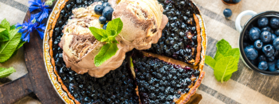 Blaubeer-Tarte mit Eis und Minze