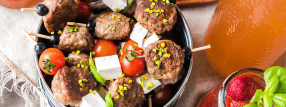 Pistazien-Buletten auf Kirschtomaten-Feta-Spießchen