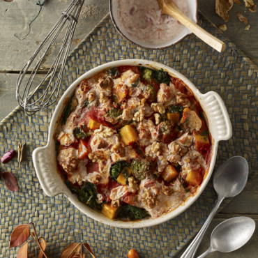 „Stampf“ Kürbis mit Grünkohl und Kichererbsen