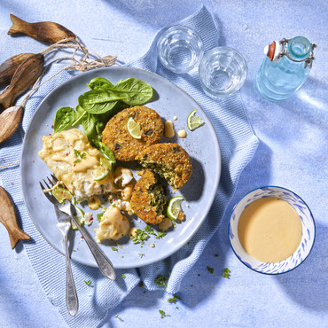 Seelachs "Tempura" mit Spinat-Medaillons