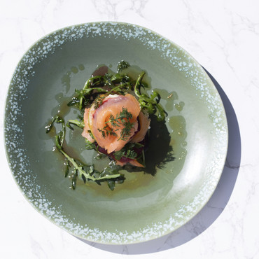 Türmchen von grünem Apfel, Räucherlachs und Rote Beete mit Meerrettichcreme (von Johann Lafer)
