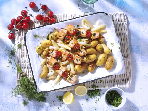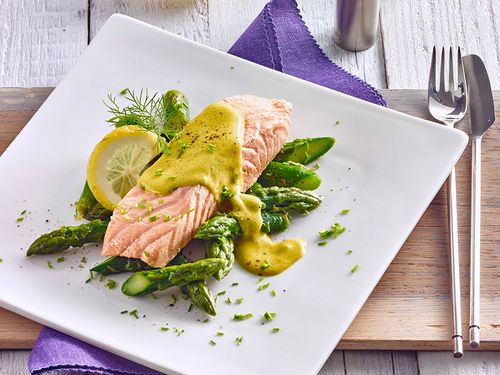 Zum Rezept >Feines Spargel-Gemüse mit Kräuter Lachs