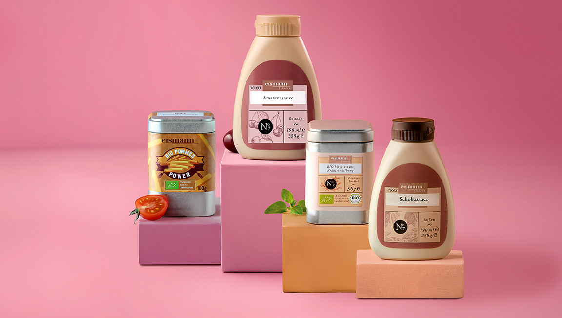 eismann Schokosauce, eismann Amarenasauce, eismann BIO Mediterrane Kräutermischung, eismann Pommes Power