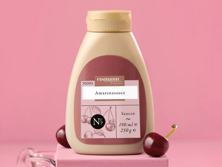 Dunkelrote Dessertsauce mit Sauerkirschsaft-Konzentrat. Typisch süß-säuerlich und fruchtig im Geschmack.