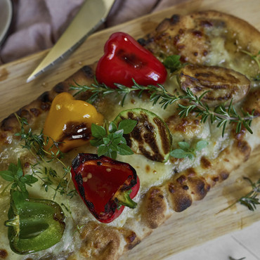 Eine Pizza, die höchsten Ansprüchen gerecht wird: In länglicher Form im Holzofen auf Stein gebacken, bietet sie einen knusprigen, aromatischen Boden, der mit Dinkelmehl verfeinert ist. Belegt mit zart schmelzendem Mozzarella und einer raffinierten Sauce, die mit Sommertrüffel veredelt wurde, entfaltet sie ein unvergleichliches Geschmackserlebnis. Diese Pizza vereint italienische Tradition mit moderner Raffinesse und verspricht ein außergewöhnliches Genusserlebnis für alle, die höchste Qualität und erlesenen Geschmack schätzen.
