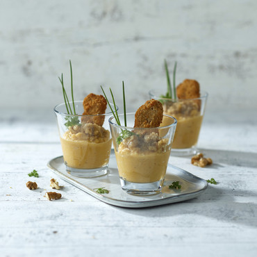 Kürbisse wachsen gerne auf Böden, die sich leicht erwärmen. Darum kommen unsere Butternut-Kürbiswürfel direkt aus Italien, wo sie den Sommer über die Sonne einfangen. Bereits geschält und in gleichgroße Würfel geschnitten ist das zarte nussige Fruchtfleisch geschmort ideal als vegetarische Beilage oder für die Zubereitung einer goldgelben Kürbissuppe zu empfehlen. Unser Tipp: Mit Mango Würfeln und Zimt eine köstliche Marmelade kochen. Das Rezept dazu finden Sie in der eismann Rezeptwelt.