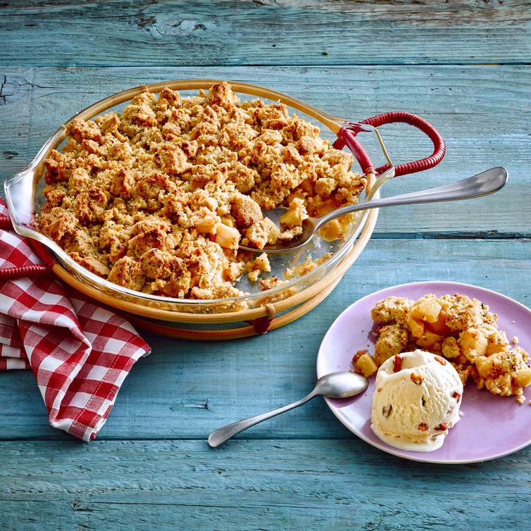 Apfelcrumble mit Walnuss Eis