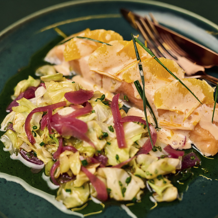 BIO-Lachs mit sautiertem Spitzkohl & Orangen-Weißwein-Sauce (Rezept von Johann Lafer)