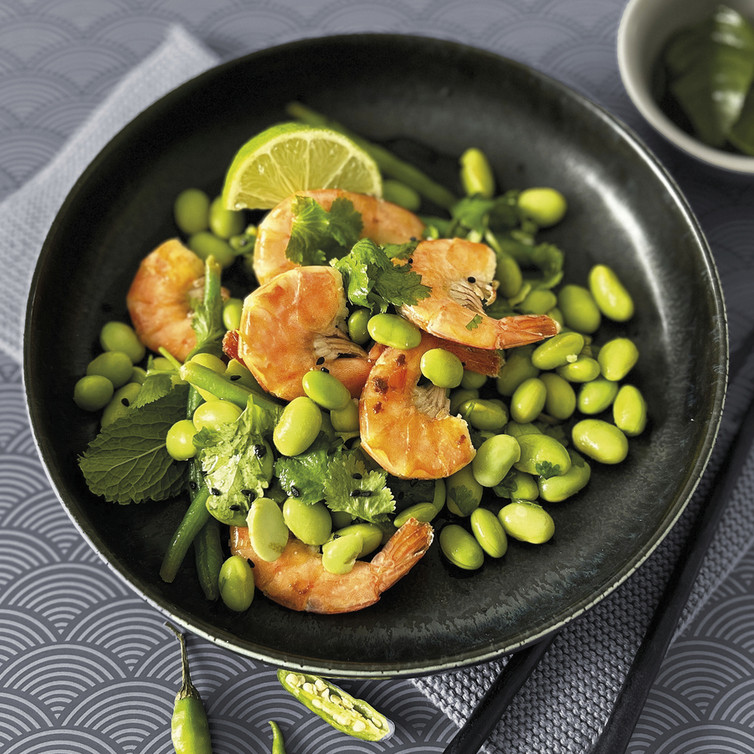Edamame gehören inzwischen zu den beliebtesten asiatischen Snacks – leicht, proteinreich und einfach unwiderstehlich. Zusammen mit knackigen grünen Bohnen, einem frischen Limetten-Dressing und zarten Garnelen entsteht ein Salat, der echtes Asia-Feeling auf den Teller bringt. Schnell zubereitet, vielseitig servierbar und ideal, um auch im Winter schon eine Prise Fernost in die Küche zu holen.