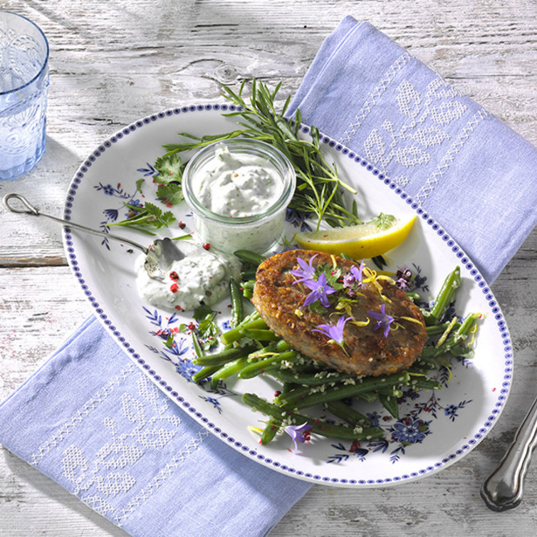 Buchweizen Linsen Medaillons auf Prinzessbohnenturm