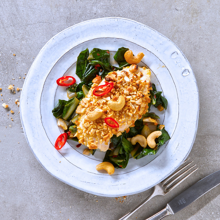 Cashew-Hähnchen auf Mangold