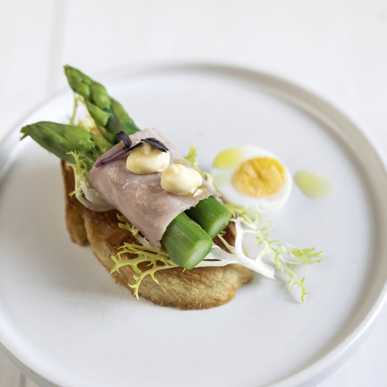 Crostini mit grünem Spargel und Kochschinken (von Johann Lafer)