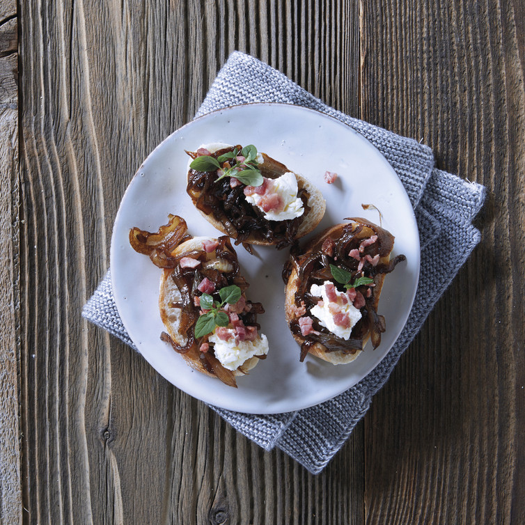 Zubereitung für Crostinis Zwiebel-Bacon Karamell