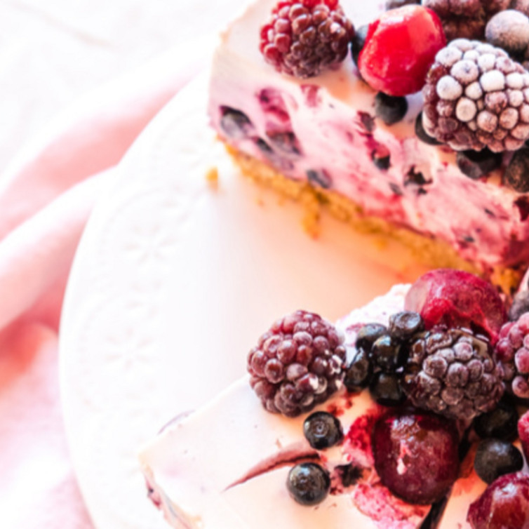Frischkäsekuchen mit Beeren und Keksboden