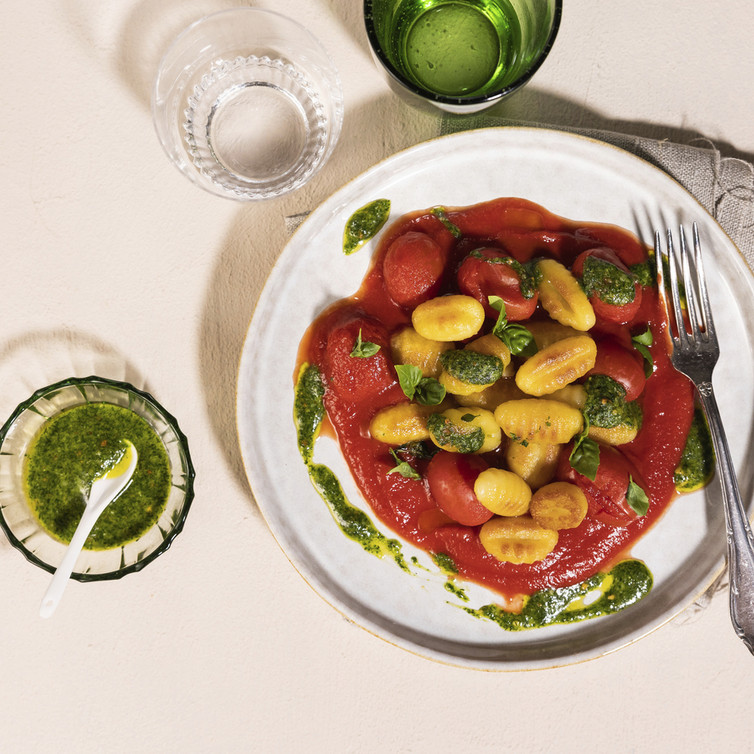 Gnocchi mit Tomatensauce, Basilikum und Pesto (von Johann Lafer)