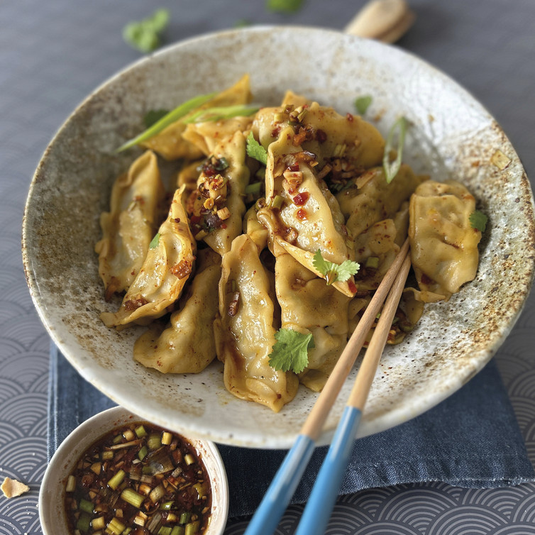 Zubereitung für Gyoza mit würzigem Soja Dressing