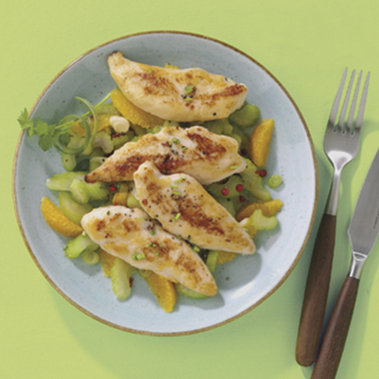 Hähnchen-Filetspitzen auf Selleriesalat