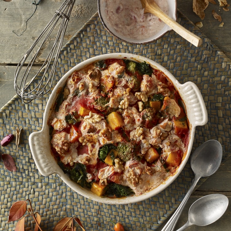 Kürbis-Gemüse-Walnuss-Gratin