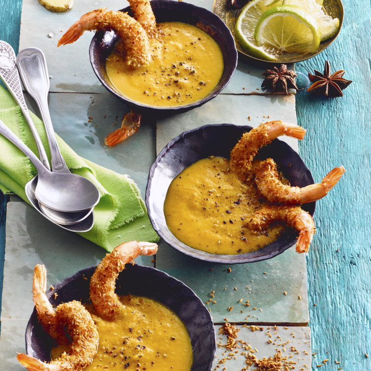 Zubereitung für Kürbissuppe mit Garnelen und Kokos