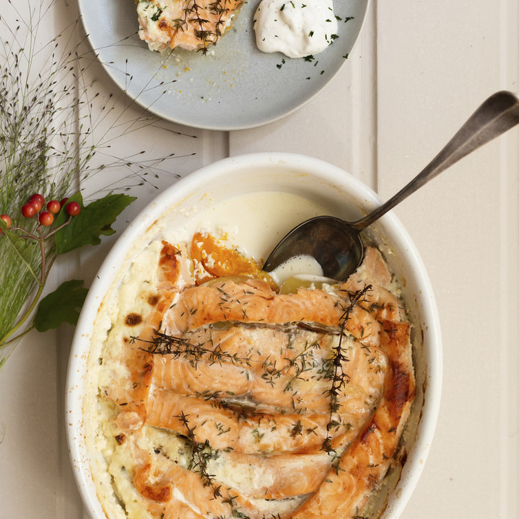 Lachs-Kartoffel-Kürbis-Gratin