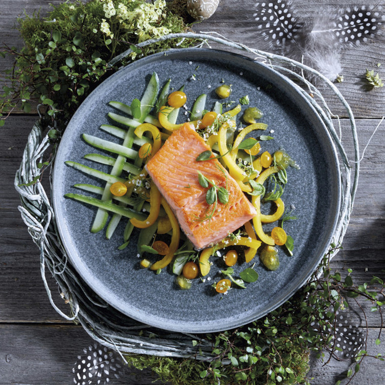 Lachsfilet auf frischem Gemüse