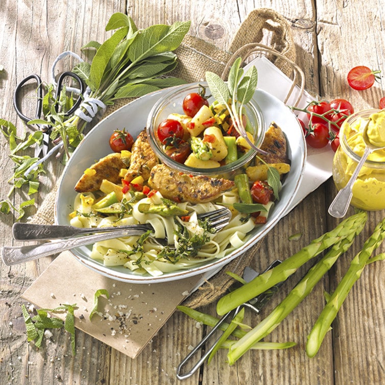 Mai Pasta mit Spargel und Hähnchenfiletspitzen