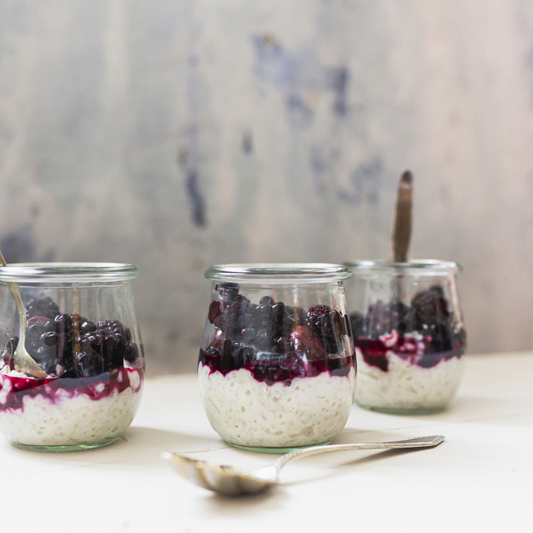 Den Vollkorn Milchreis auf Schalen verteilen und mit der Beerenmischung und dem Zimt bestreut genießen.