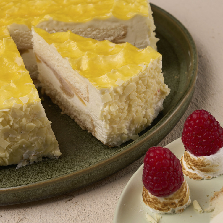 Panna-Cotta-Pfirsichtorte mit Baiser und Himbeeren