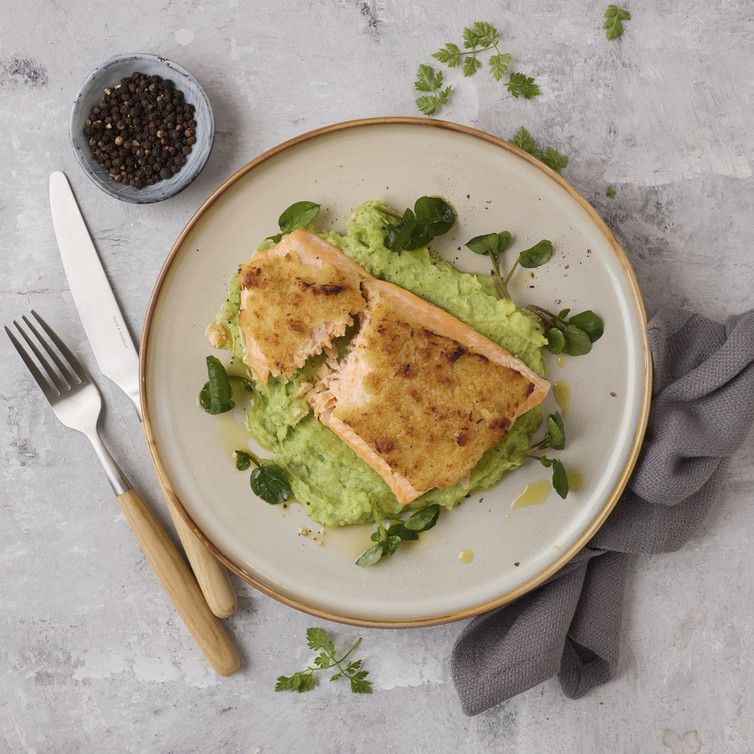 Saibling mit Krenkruste auf Brunnenkressepüree (von Johann Lafer)
