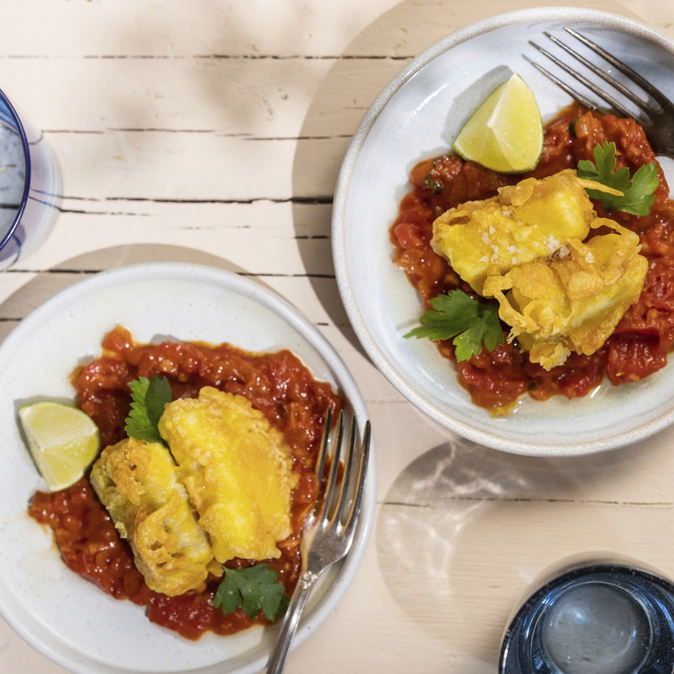 Seelachs in Tempurateig mit fruchtiger Braai-Sauce (von Johann Lafer)
