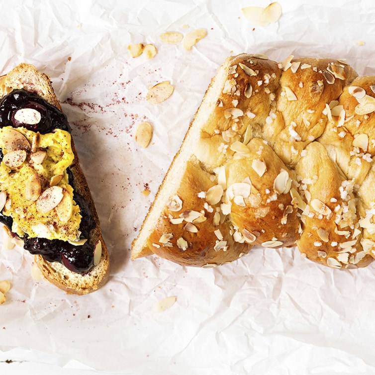 Eine größere Pfanne erhitzen, die Mandelblättchen goldbraun anrösten, aus der Pfanne nehmen und beiseite stellen. Nun das Kokosöl in der Pfanne erhitzen und die Eiermilch hineingießen.