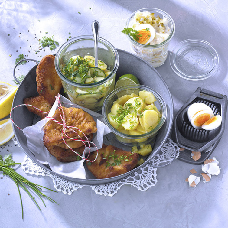 Wiener Mini Schnitzel vom Schwein mit Kartoffelsalat Variationen