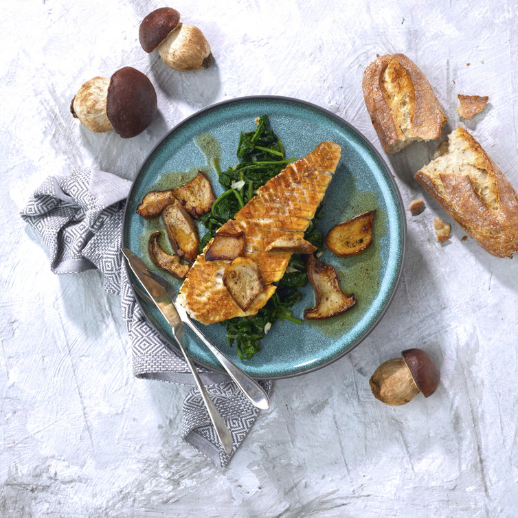Zander mit Blattspinat und Steinpilzbutter