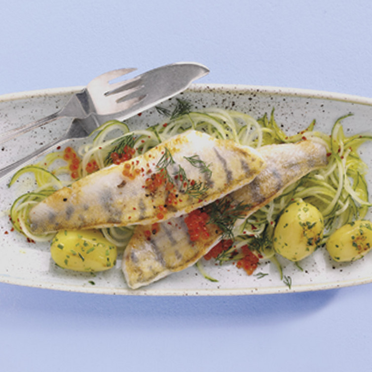 Zanderfilet auf Gurkenjuliennebett