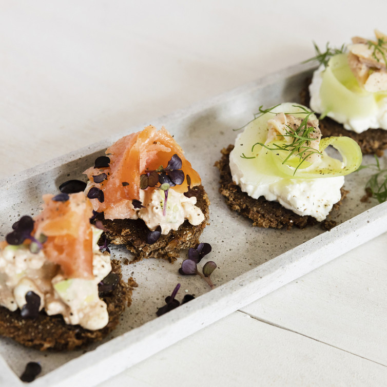 Zweierlei Pumpernickel-Rauchfisch-Schnittchen