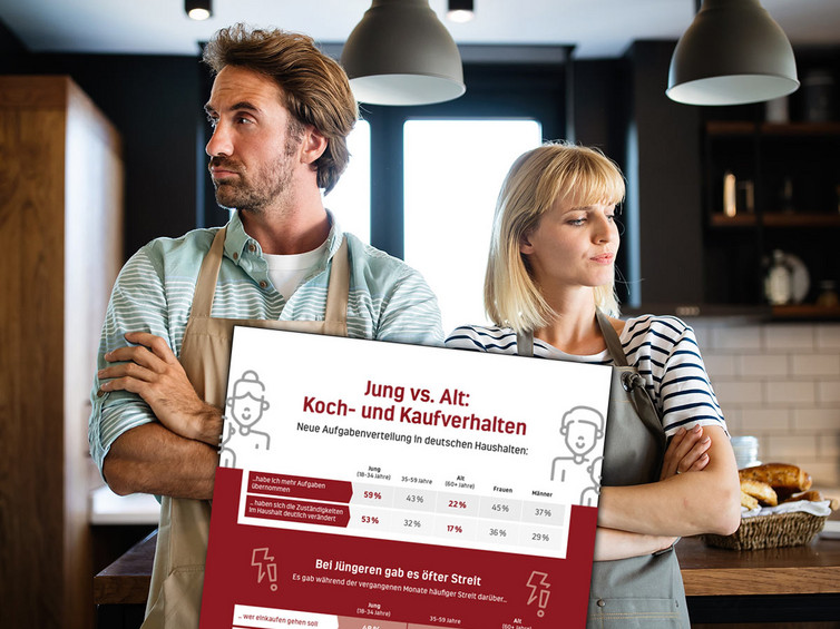 Die Deutschen waren während der Pandemie mehr zuhause und haben auch häufiger selber gekocht. Mehr als jeder zweite Deutsche war während der Pandemie tagsüber wie abends öfter zuhause als vor der Pandemie. Unter den Jugendlichen waren es zwei Drittel. Ein Viertel der Deutschen und sogar ein Drittel der jungen Familien hat entsprechend mehr warme Mahlzeiten als vor der Pandemie zu Hause zubereitet. Dafür musste eingekauft werden: 58 Prozent der Deutschen haben während der Corona-Pandemie bestimmte Lebensmittel häufiger gekauft als davor. Bei den 18- bis 34-Jährigen waren es sogar 82 Prozent, die in der Krise bei einigen Produkten stärker zulangten – bei den über 60-Jährigen nur 39 Prozent.